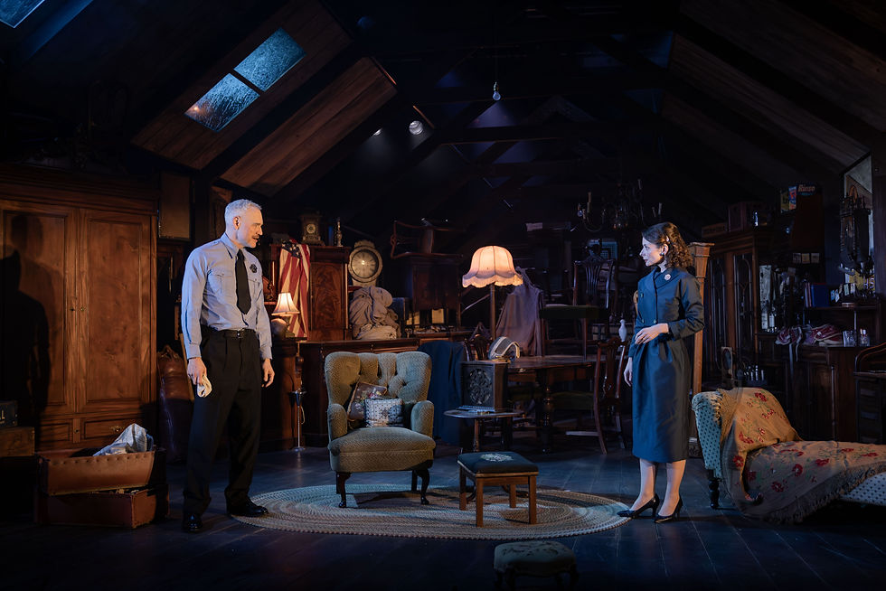 Jon Bausor's set design is full of eerie naturalism; from the moment the audience walks in they are pulled into a dingy mysterious attic that is strikingly real. The atmosphere Bausor creates with his set is palpable from the very first moment. Bausor's attic springs into undeniable life and sets the stage perfectly in this jumbled, messy world that Miller has created, amplified by Jonathan Munby's directorial vision.
