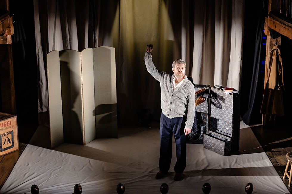 Director Selina Cadell, as well as movement director Did Hopkins, focus terrifically on physicality here. Soanes’ portrayal is one of poise and measure, with each movement carefully choreographed and sequenced, a reminder of the diligence of Guinness’ work and the meticulous crafting of each of his roles, even if Guinness himself says he performs ‘blankly’.